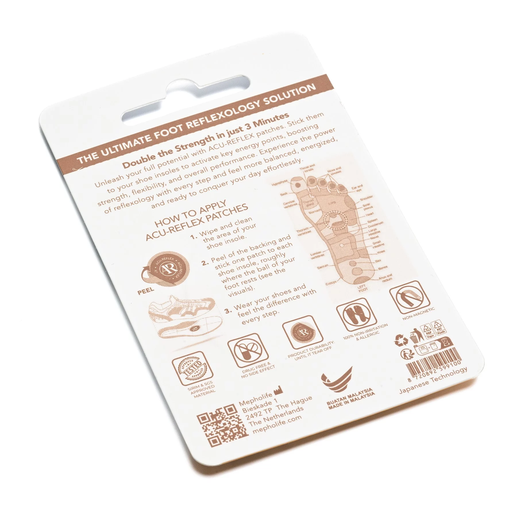 Acu-Reflex uses the Acu-Resonance Method™, Mepho’s approach to wearable support. Each patch contains a specially developed layer that is activated by the body’s natural warmth. When placed on specific acupoint-inspired locations, it provides subtle, non-invasive support.