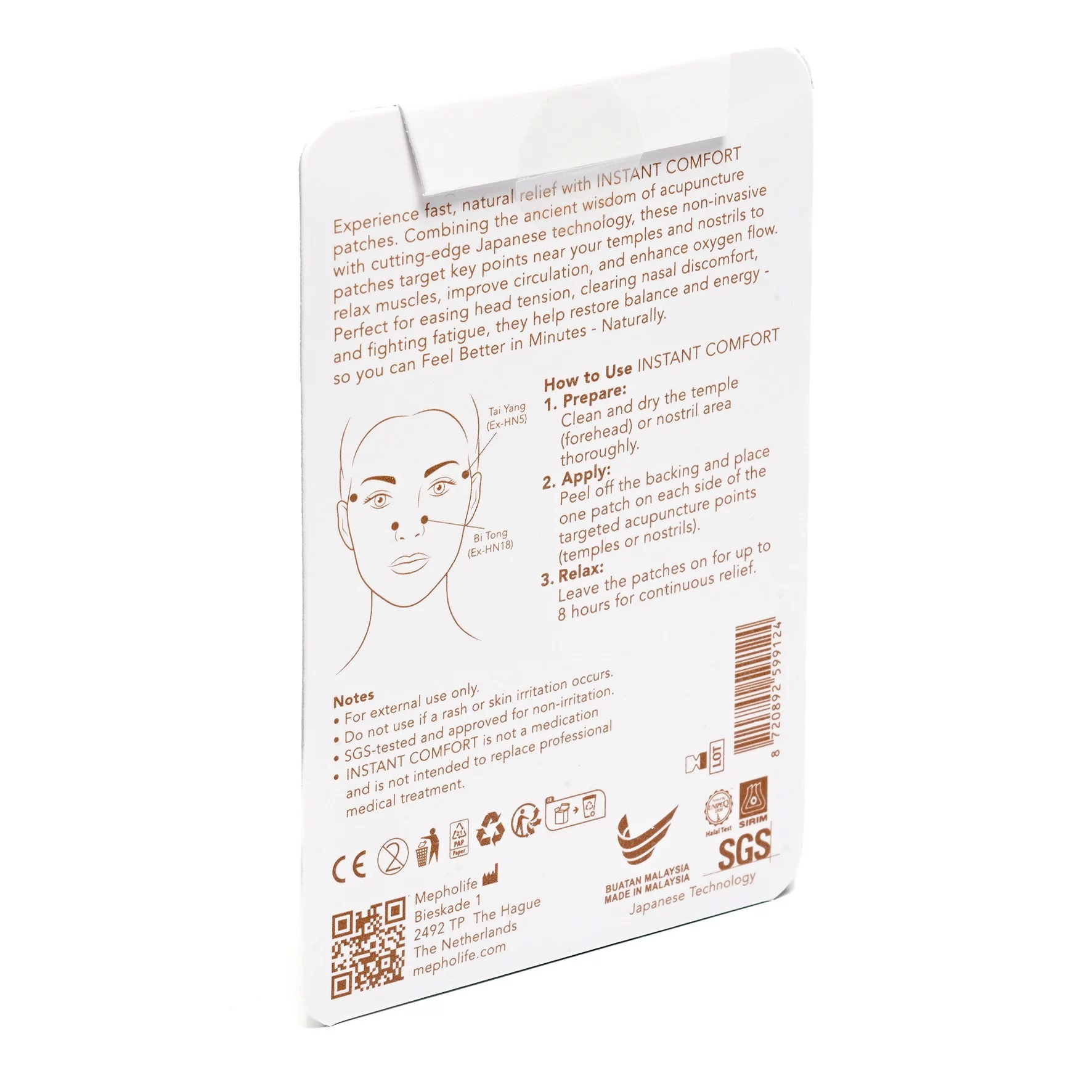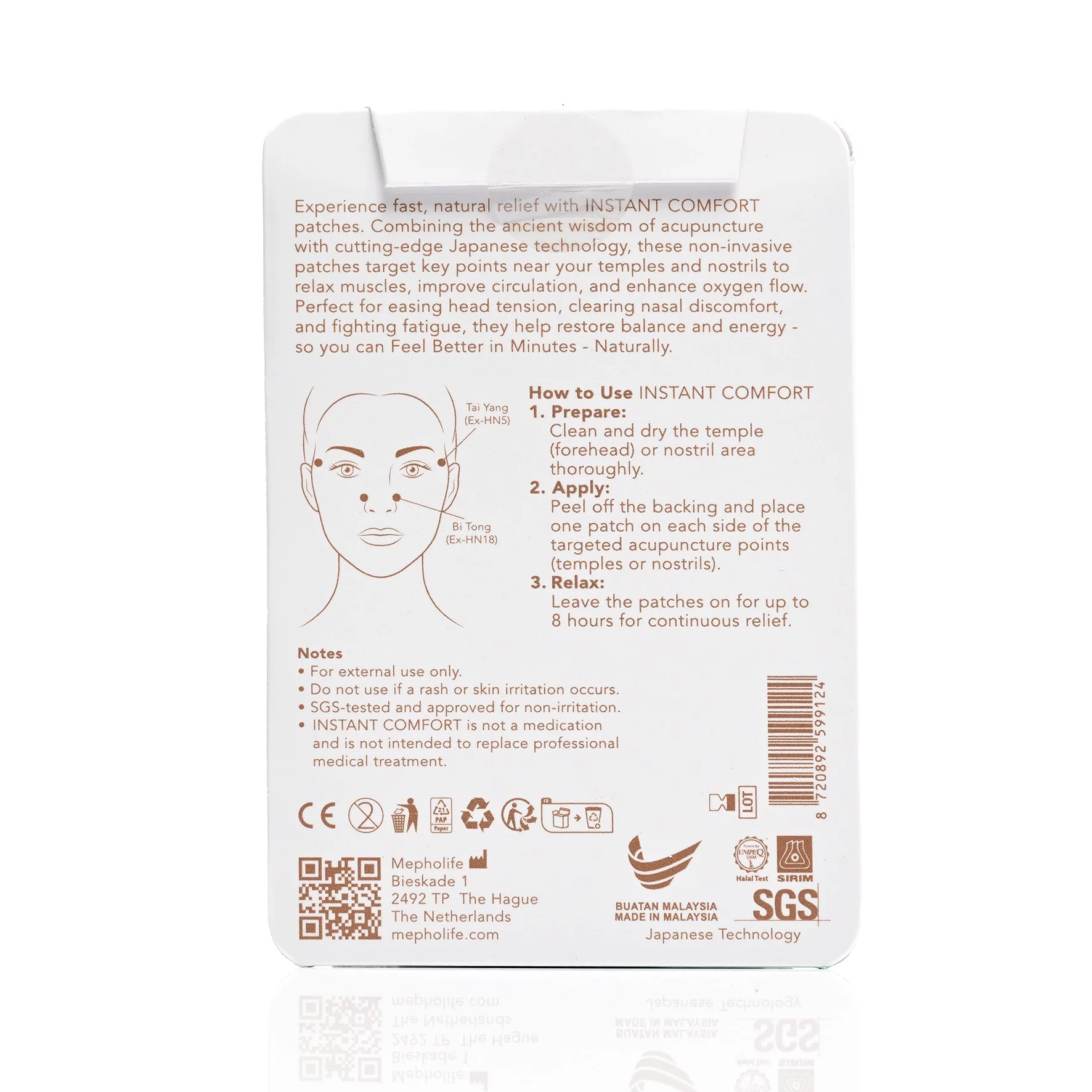 Instant Comfort is based on the Acu-Resonance Method™, which works with the body’s natural warmth and acupoint-inspired placement associated with head tension and nasal congestion. The approach is non-invasive, free from additives or active ingredients, and designed for moments when support is needed quickly.