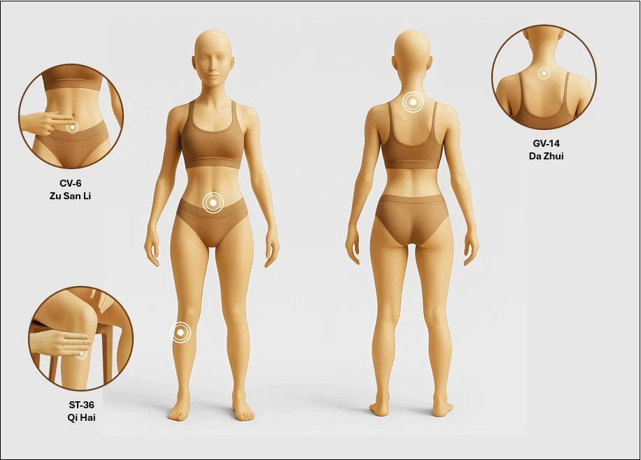 Apply one patch to each acupoint shown in the diagram.